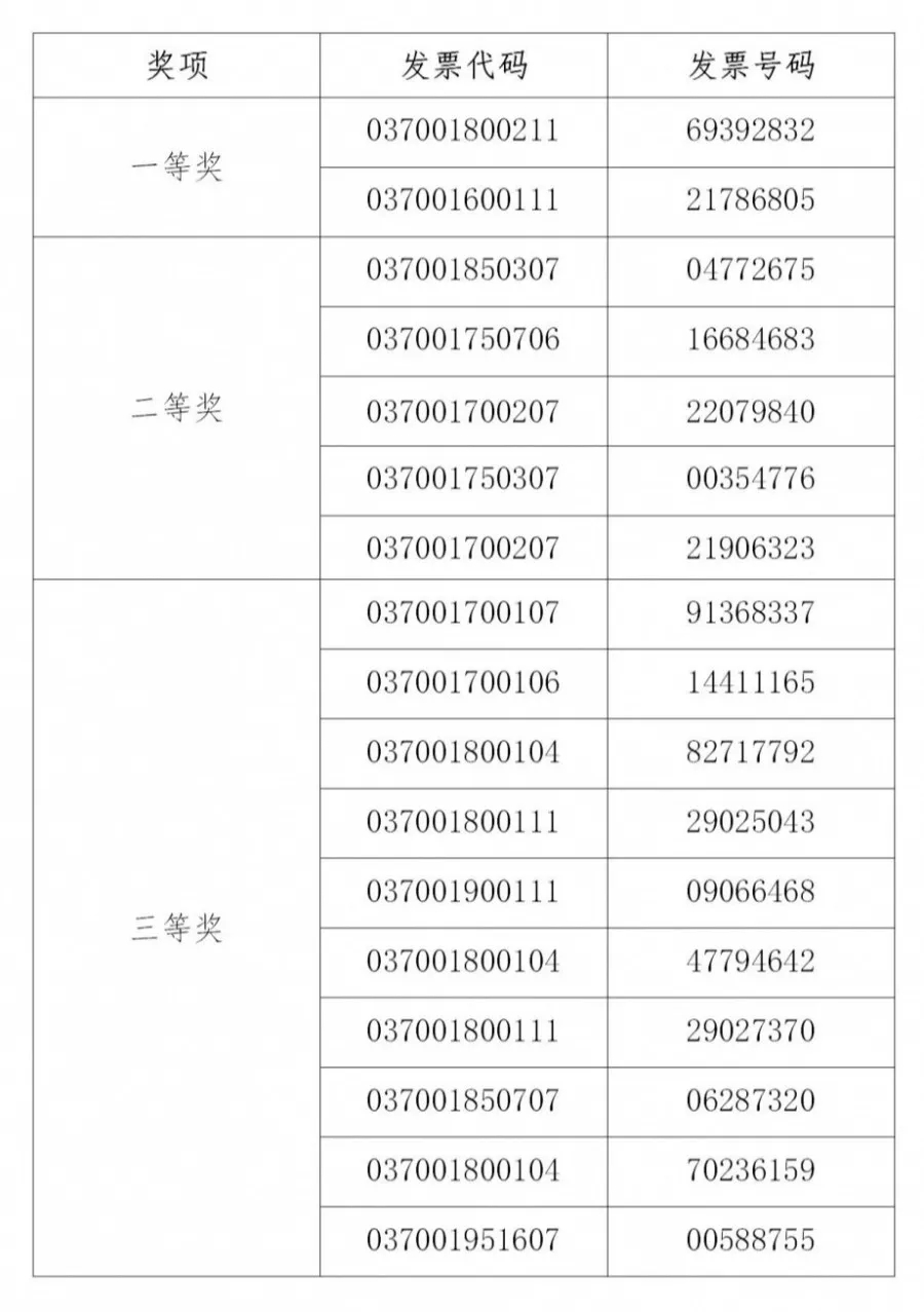 关于山东省有奖发票定期摇奖(第三期)中奖结果的公示